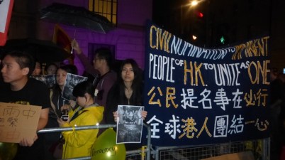 Demonstrators gathered outside the Chinese embassy in London to support pro-democracy protesters in Hong Kong, 1 October. Organisers of the London protest said 4,000 people gathered to show people in […]