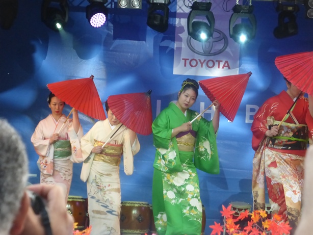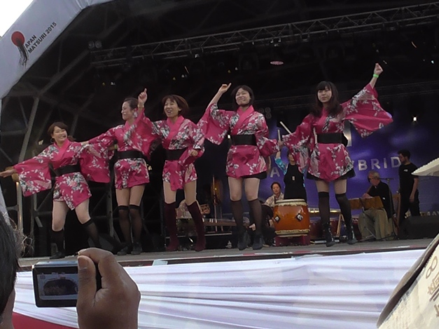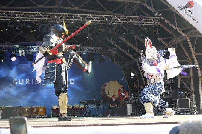 There were stage performances all day with special appearances by Izaku Taiko Odori and Satsuma Kenshi Hayato from Kagoshima There were also Japan Taiko Drumming, Yurukyara Mascots, Manga, Japanese food, music, song, family activities and martial arts.