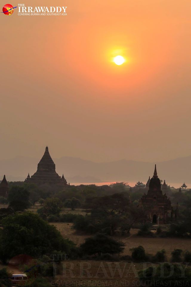An experienced English-speaking tour guide, Haymar Aung, told The Irrawaddy that there are two famous spots in Bagan from which sunsets can be viewed, and that huge crowds of tourists throng to these prime viewpoints—on the tops of temples—daily. She did, however, express concern about tourists who desecrate the ancient heritage site.