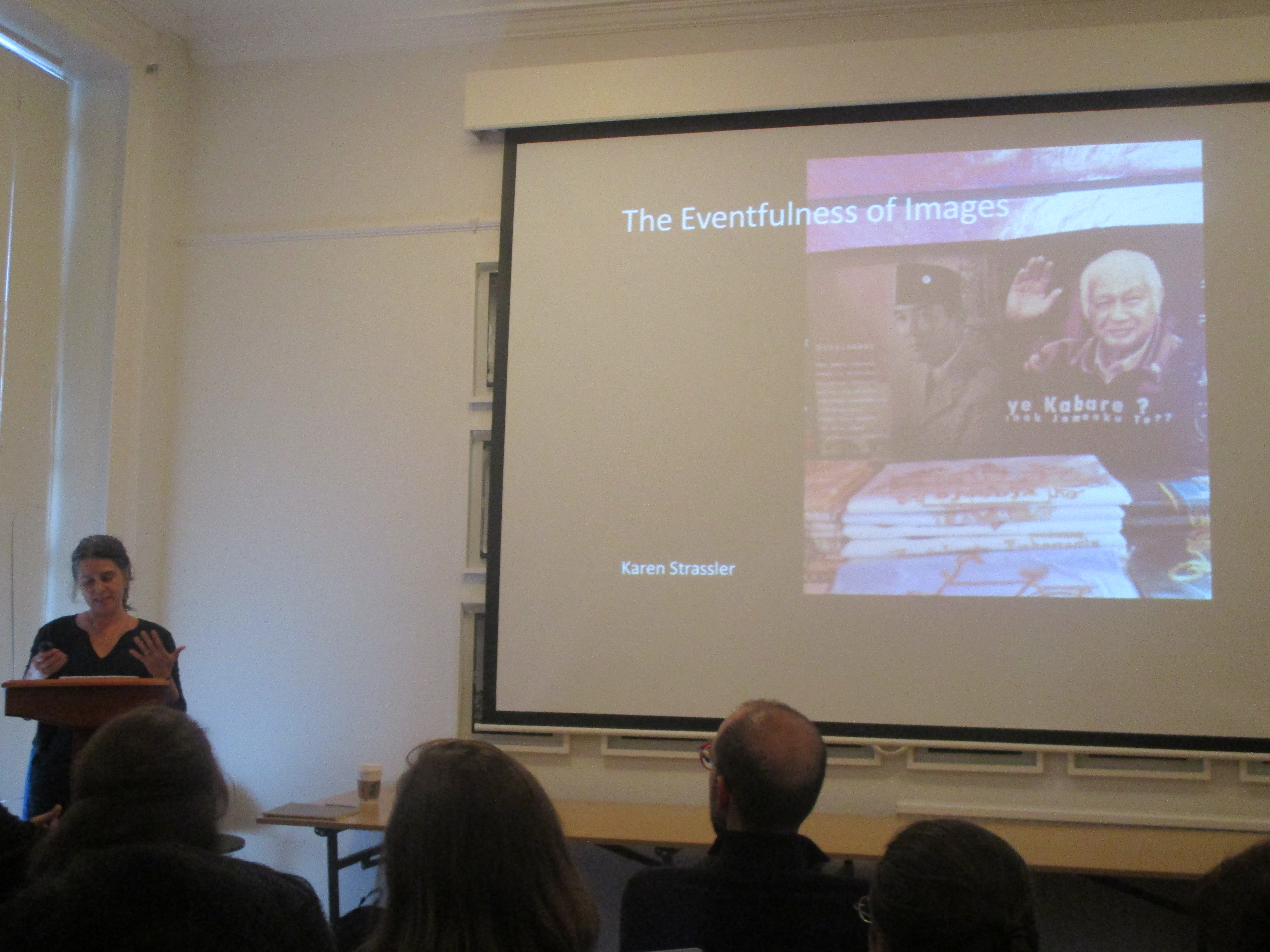 Focusing on political images in Indonesia, this talk ‘The Eventfullness of Images’ presented an argument for thinking of images as events rather than objects, representations, or social agents. The “image-event” offers analytic purchase on the political work of images by attending to their processual qualities as they move, mutate, and proliferate within contemporary, complexly mediated public spheres.