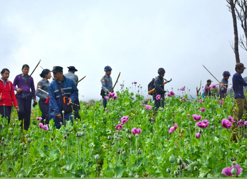 According to the United Nations Office on Drugs and Crime (UNODC), Myanmar’s anti-narcotics effort destroyed 13,450 hectares of poppy fields in 2015 and 3433 hectares in 2017, but poppy cultivation has not decreased significantly and still thrives in Myanmar.