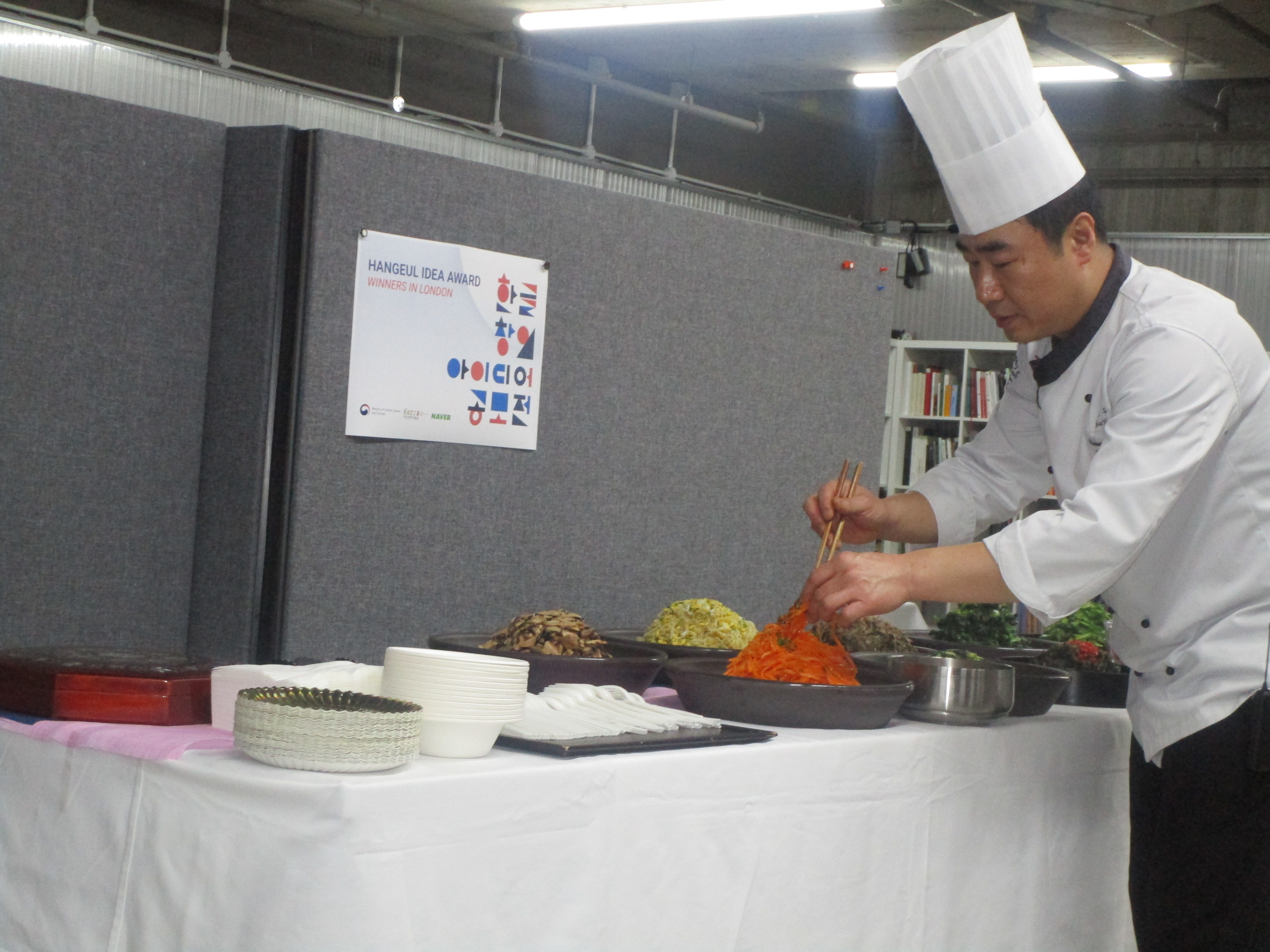 The event included a cooking demonstration of two Jeonju classics that are featured in the Taste of Korea exhibition, namely Bibimbap (vegetable rice bowl with chilli paste) and Kong-namul-gukbap (bean sprout soup with rice). Following the introduction, the audience had the chance to try the dishes.