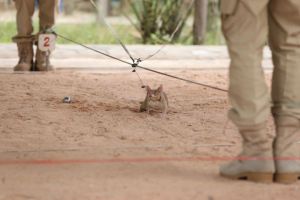 “Once at the minefield, everyone gets their protective gear on and goes on to the minefield. Two rat handlers per rat cover the prepared [200sqm] boxes. The rats are used to quickly identify where the landmines are buried and then they can rest in the shade as they are nocturnal and don’t do well in heat, so they need sleep,” she told The Post.