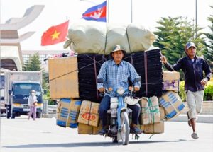 A man transports goods across the Bavet border crossing. KT/Chor Sokunthea