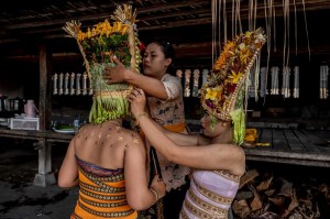 Waiting for the gods: The dancers get ready to grace the presence of the gods with their sacred rejang dance. JP/Agung Parameswara