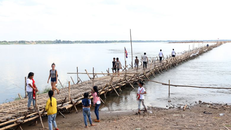 The new 779m concrete bridge, opened in March last year, connects Kampong Cham city to Koh Paen. Pha Lina