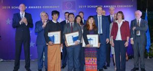 The Schuman Award — named after former French Foreign Minister Robert Schuman, one of the founding fathers of the European Union — was established in 2017 to recognize Myanmar citizens who foster positive change in their communities and promote democracy, rule of law, peace and human rights.
