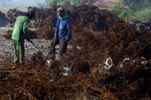 Villagers sort steel waste after being burned. They would sell it for Rp 1,500 per kilogram. JP/Sigit Pamungkas