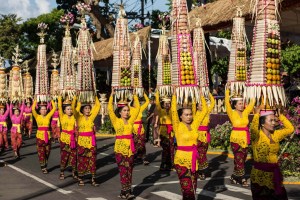 Balinese women carry a traditional offering during a cultural parade. (The Jakarta Post/Agung Parameswara)