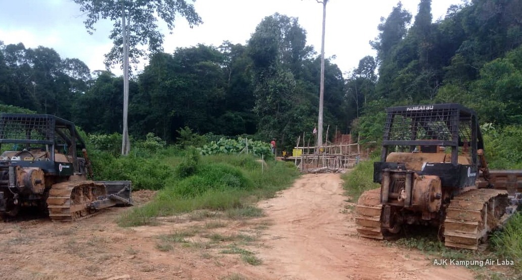 The Temiars of Kampung Sungai Papan/Air Laba/Ong Jangking raced down to their blockade site when they saw a couple of bulldozers attempting to ram through them on Thursday, 18 July 2019.