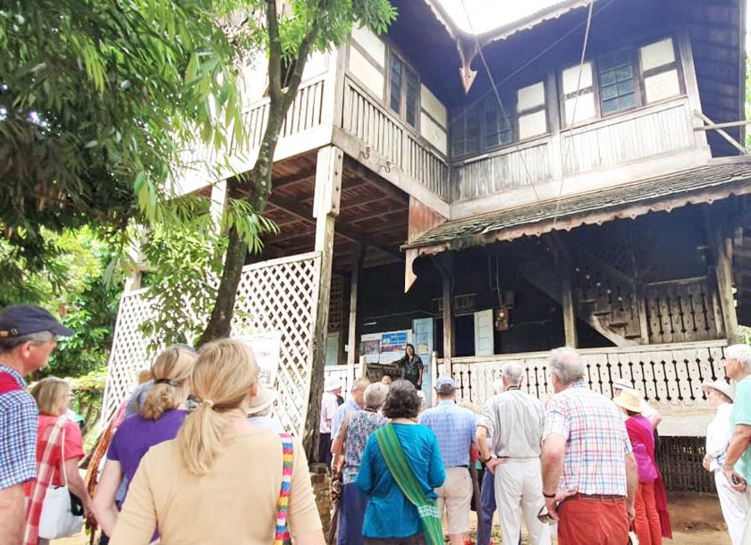 Tourists at the entrance of the house where George Orwell lived in Katha Township . Photo – U Nyo Ko Naing
