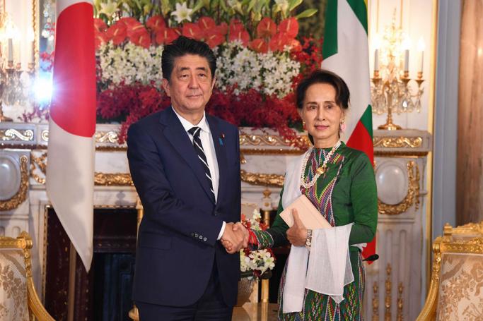 Japanese Prime Minister Shinzo Abe assured visiting State Counsellor Daw Aung San Suu Kyi of his government’s support as Myanmar transitions to democracy.