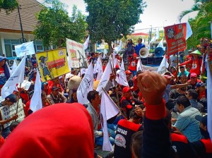 Around 250 people from Wadas village in Purworejo staged a protest in front of the office of the Serayu-Opak river basin management organization (BBWS-SO) in Yogyakarta on Thursday. The BBWS-SO conducted a preliminary study and approved the construction of the Bener Dam in Bener village, Purworejo.
