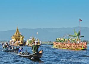 A Phaung Daw Oo pagoda procession on Inle Lake. Aung Htay Hlaing/The Myanmar Times