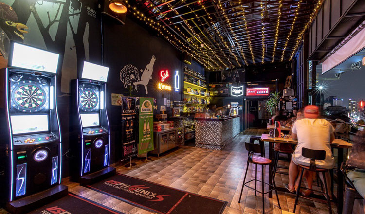 Today, 5 Drunk Men sits perfectly on the fourth floor of a building along Preah Sisowath Quay, overseeing the great Tonle Sap. If you are coming into the city from Wat Phnom, you would be able to spot bright neon lights on the side of the building which spell out the bar’s name.
