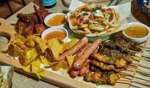 A mouth-watering platter of satay, nachos, cheesy sausages, peri-peri wings and cheesy fries. Supplied