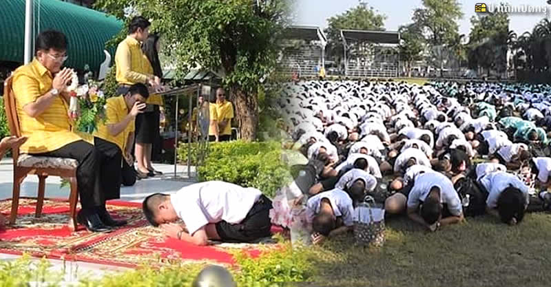 An outgoing School director in Thailand has come under heavy criticism for holding a farewell ceremony in which students were made to prostrate themselves in front of him.