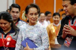 Myanmar State Counselor Aung San Suu Kyi (C). Photo: Nyein Chan Naing/EPA