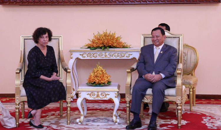 EU ambassador Carmen Moreno meets with Senate president Say Chhum. Senate