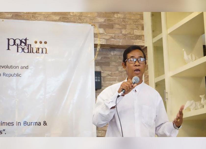 U Soe Hlaing, a former political prisoner and a victim of torture shares about his experience at the Memory of Myanmar Event at Kafe in Town, November 17,2019. Photo: AAPP