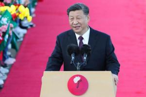 Chinese President Xi Jinping (C) speaks after his arrival at Macao International Airport in Macao, China, 18 December 2019. Photo: EPA