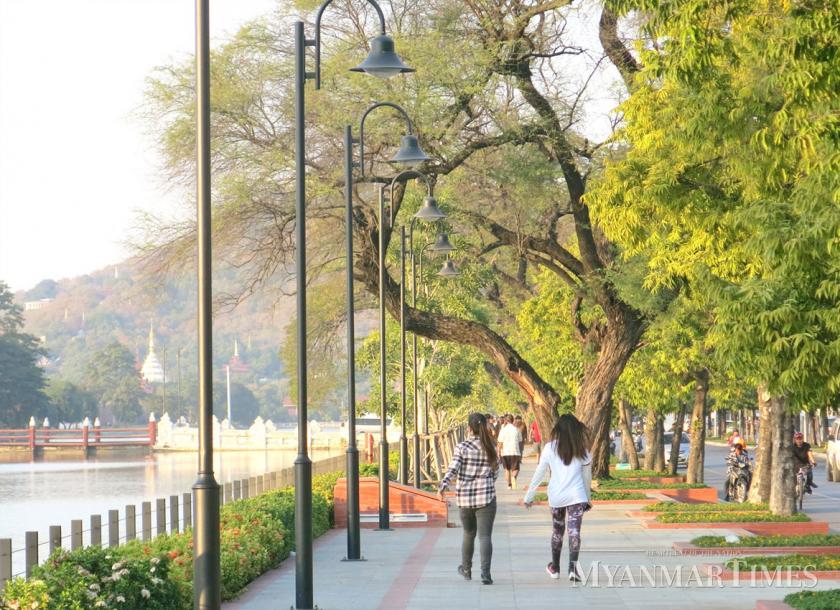 People walk in the southern part of the moat in Mandalay. Phyo Wai Kyaw/The Myanmar Times