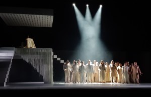 The play was light on dialogue. Most of the actions were interpreted into music by a 25-piece mixed ensemble conducted by Peter Veale from Germany’s Musikfabrik and an elaborate light show by Joonas Tikkanen from Finland.