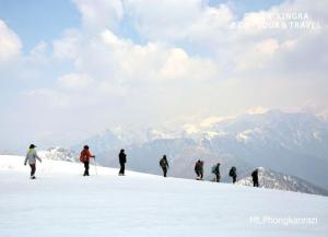 Climbers walk in the snow-capped Hkakabowrazi mountains. Photo – Seng Hkum