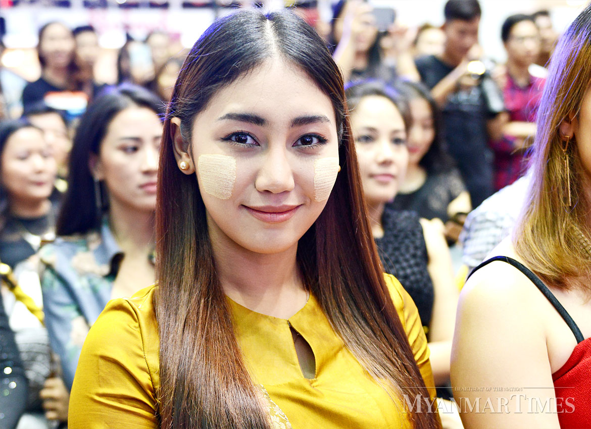 A Myanmar woman wears thanaka during an event in downtown Yangon. Aung Htay Hlaing/The Myanmar Times
