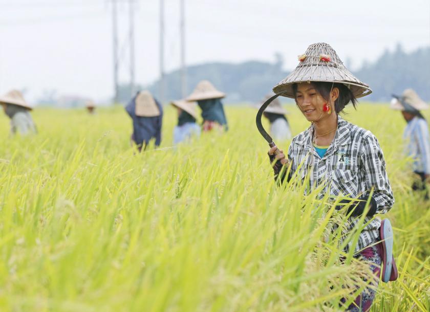 Myanmar women wearing hats in rice field. Photo: The Myanmar Times