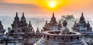 Borobudur sunrise. Zone I of the temple was sprayed thoroughly on Monday, particularly parts that were often touched by visitors, such as the stupas and handrails. Photo: Indonesia Tourism