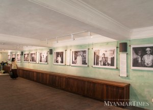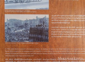 Photos describing the building’s history. This picture depicts General Aung San giving a speech from the top of the Myanmar Aswe building. Shin Moe Myint (J)/The Myanmar Times