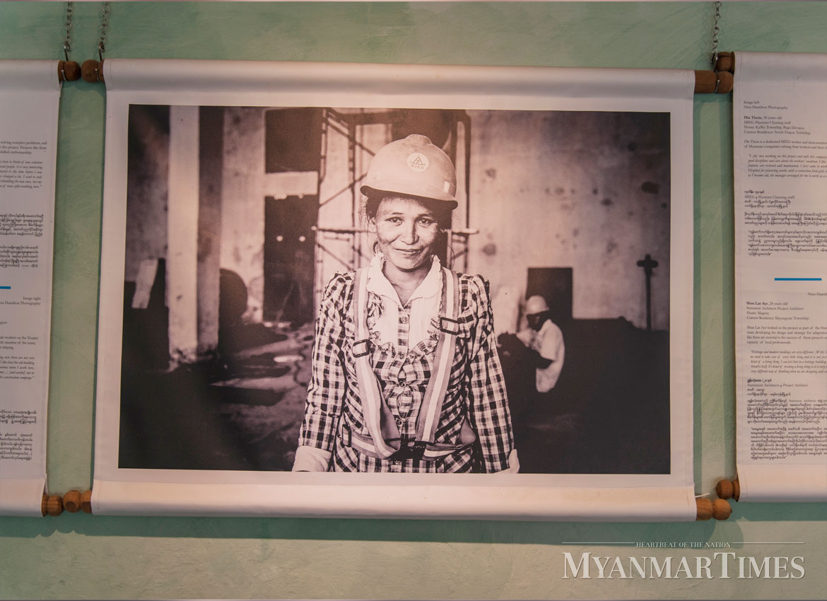 Images of the people and teams involved in the building’s restoration. Shin Moe Myint (J)/The Myanmar Times