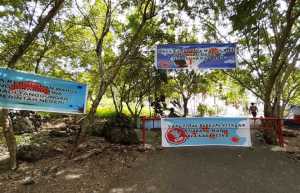 Posters warning people not to enter a quarantine area in Hitu Lama village, Ambon, Central Maluku. (Photo courtesy of the National Disaster Mitigation Agency)