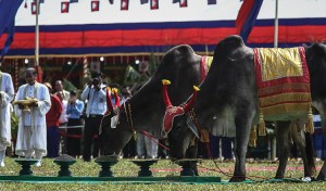 Royal oxen eating crops during the ceremony. KT/Khem Sovannara