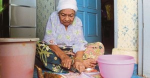 Wook Esah cutting up tapioca skin at her home in Batu Pahat on Sunday. — Pix: NSTP/ ESSA ABU YAMIN