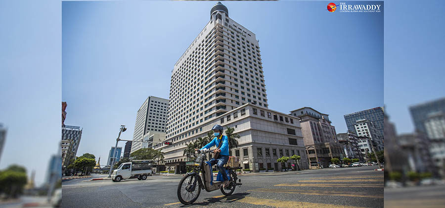 Yangon’s nearly-deserted downtown in mid-April during the government’s stay-at-home advisory period to curb the spread of the coronavirus. / Htet Wai / The Irrawaddy