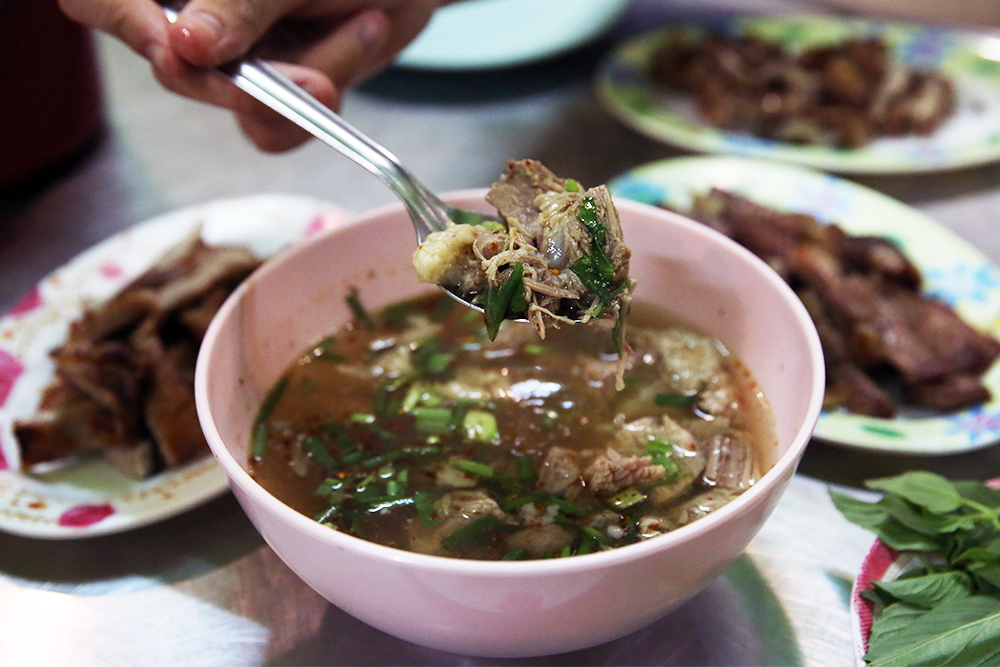 Before it was discovered by students, the shop used to be a popular pitstop among taxi and tuk tuk drivers when it was on the curbside of Rama I Road. Only larb and koi were offered back then, hence the shop’s name. Sanea also added his own name, meaning “charm” in Thai, to the sign.