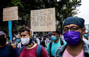 Refugees demand shelters and advocacy as they stage a rally in front of the UNHCR office. (JG Photo/Yudha Baskoro)
