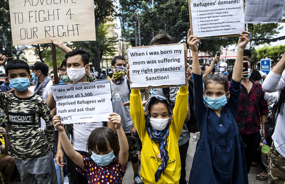 JAKARTA – Hundreds of refugees from Middle East countries staged a rally in front of the United Nations High Commissioner for Refugees (UNHCR) office in Central Jakarta on Monday, demanding resettlement and their refugee status determination (RSD).