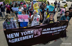 JAKARTA Activists from the Indonesian People’s Front for West Papua (FRI-WP) and the Papuan Student Alliance (AMP) held a demonstration on Saturday against the 1962 New York Agreement, which allowed the transfer of rule over West Papua from the Netherlands to temporary administration by the United Nations, before it was handed over to Indonesia in the same year.