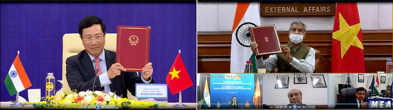 At the virtual meeting on August 25, the two sides signed a memorandum of understanding (MoU) for cooperation between the Sushma Swaraj Institute of Foreign Service (SSIFS) in New Delhi and the Diplomatic Academy of Vietnam in Hanoi, and an MoU between National Maritime Foundation, New Delhi and Scientific Research Institute of Sea and Islands, Hanoi.