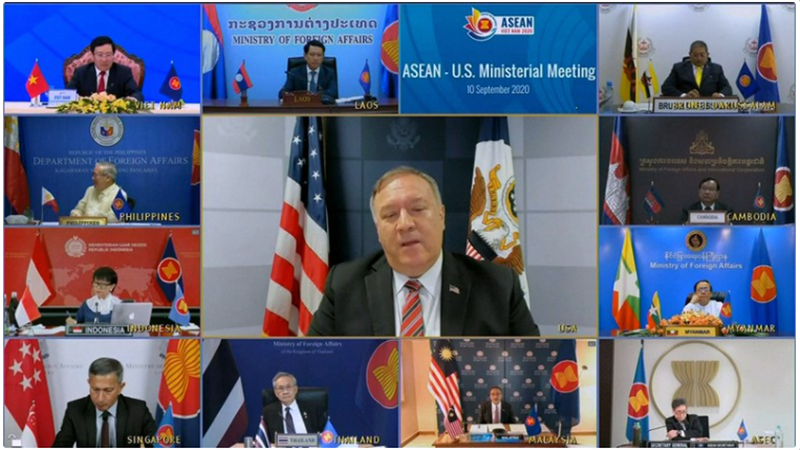 US Secretary of State Mike Pompeo at an online meeting with ASEAN foreign ministers on September 10, 2020. Photo: VTV