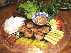 ROLL UP: Grilled squid balls with salted dried apricot sauce – a wrap-and-roll dish balancing tastes and harmony colours. VNS Photo Minh Thu