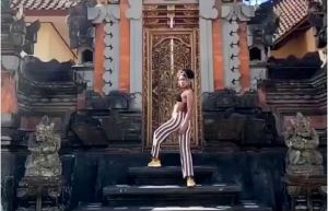 Kristen Gray posts a photo of herself posing near a Hindu temple in Bali. (Twitter)