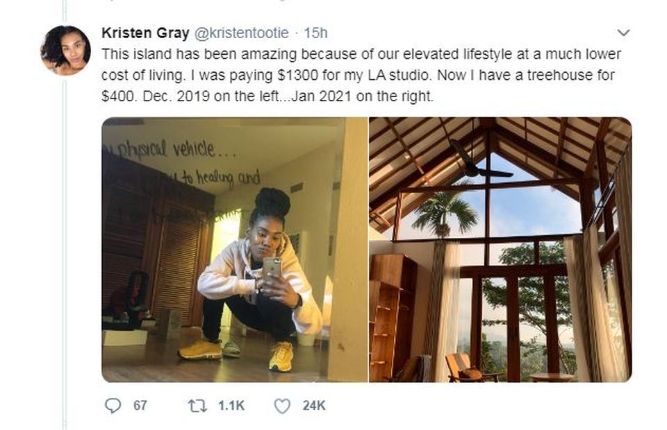In the Twitter thread, Gray wrote that she and her girl friend booked one-way flights to Bali in December 2019 with an initial plan of staying for six months to “stack some bread and elevate our lifestyle.”