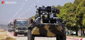 Military trucks and armored personnel carriers are deployed in Naypyitaw. / The Irrawaddy