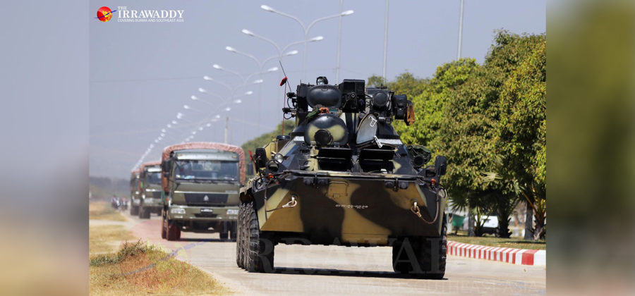 Military trucks and armored personnel carriers are seen in Naypyitaw, the capital of Myanmar, on Feb. 3. / The Irrawaddy