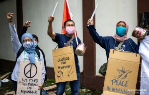 Indonesian Activists Stage Protest to Show Solidarity to Myanmar People