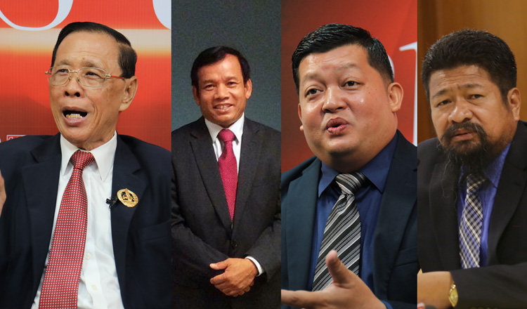 CPP spokesman Sok Eysan (L), president of the Khmer Conservative Party Real Camerin (C, L), president of the Khmer Will Party Kong Monika (C, R), and former CNRP senior official Ou Chanrath (R). KT